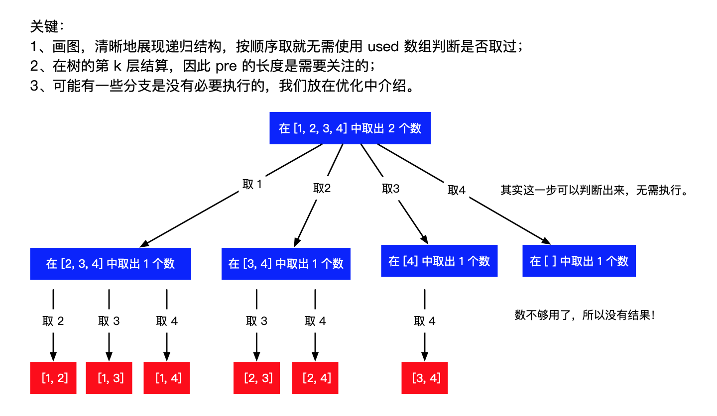 # 注意和全排列问题的区别,因为按顺序选择,因此无须使用 used 数组